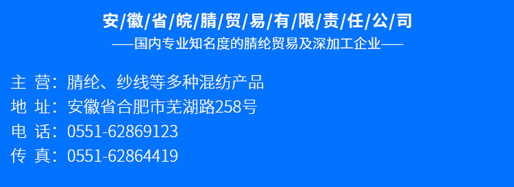 安/徽/省/皖/腈/貿(mào)/易/有/限/責/任/公/司--專業(yè)腈綸貿(mào)易及深加工企業(yè)